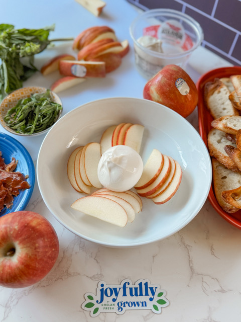 8. Serve with the baguette crostini. Scoop up the apple and burrata mixture using the crostini’s and enjoy!