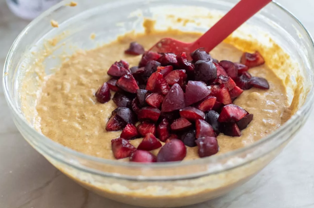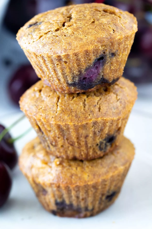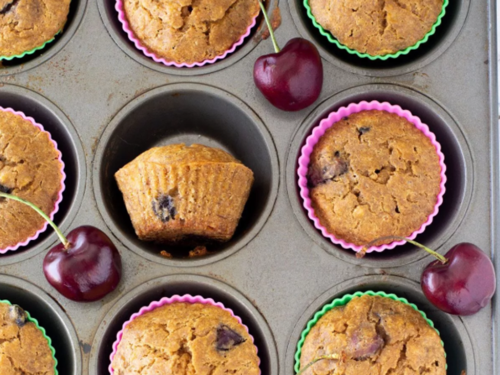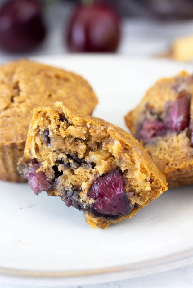 I’m glad he loves these muffins, though, because cherries are a superfood for kids. They are packed with fiber, vitamin C, and potassium, nutrients critical to a growing body. Fiber helps regulate the digestive system by maintaining a healthy gut microbiome and promoting regularity. And never did I care about another person’s regularity as much as I do now that I’m a parent. As I’m sure, you know, Vitamin C is essential for the immune system, and potassium performs many critical functions such as muscle contraction and nerve function.