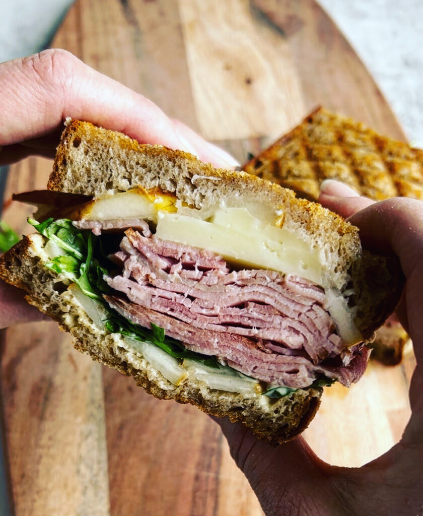 Whether you are looking for a new dinner idea or different lunch sandwich option, this one will check all the boxes! I used Bartlett pear in this recipe because I love the authentic pear taste, buttery texture, and high juice content. Ham is always good with a sweet fruit, and this is a perfect marriage of flavors. The peppery arugula, Dijon and tangy Manchego add the savory element needed to make this sandwich an experience to remember!