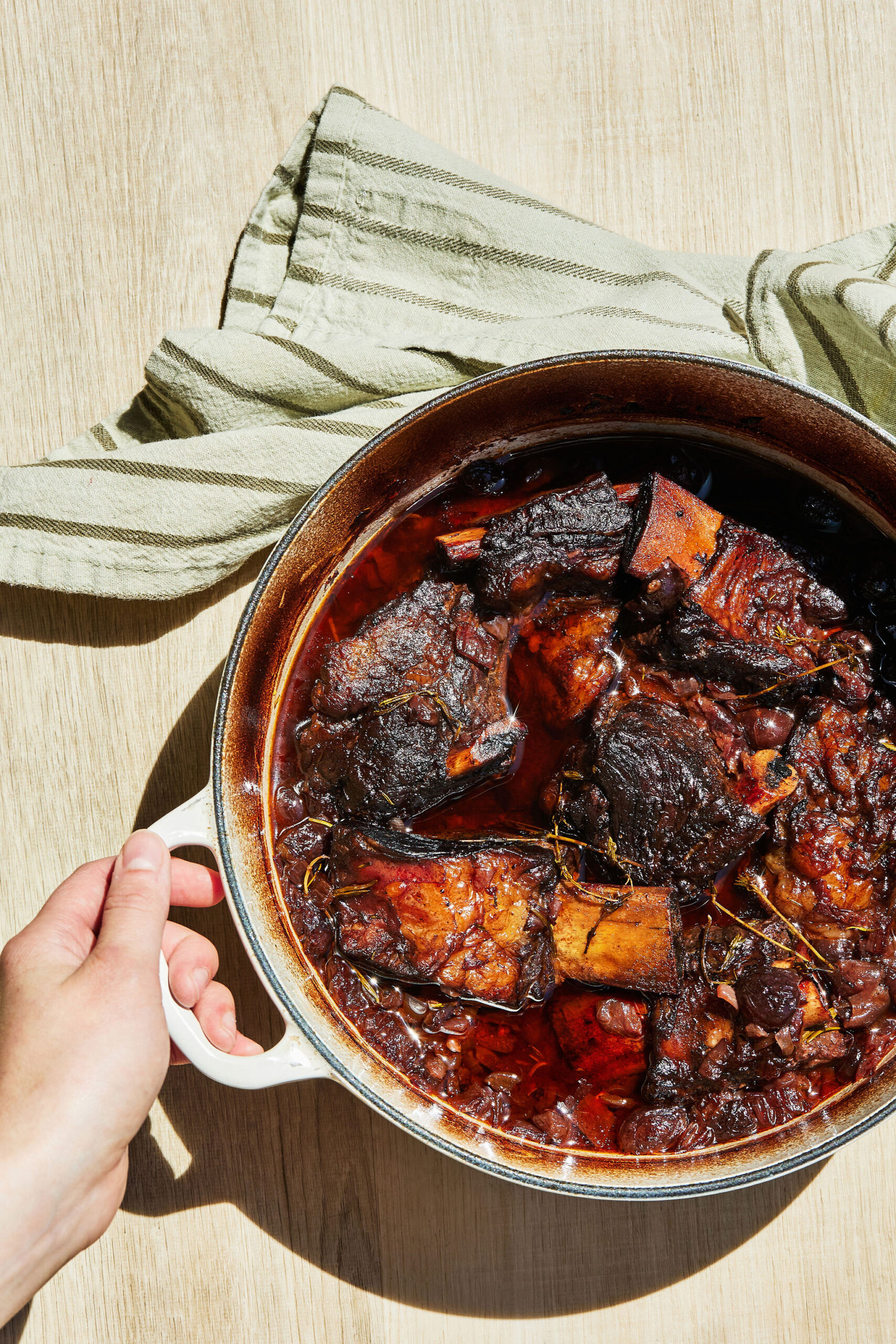 - Return the short ribs to the pot, nestling them into the cherry mixture.