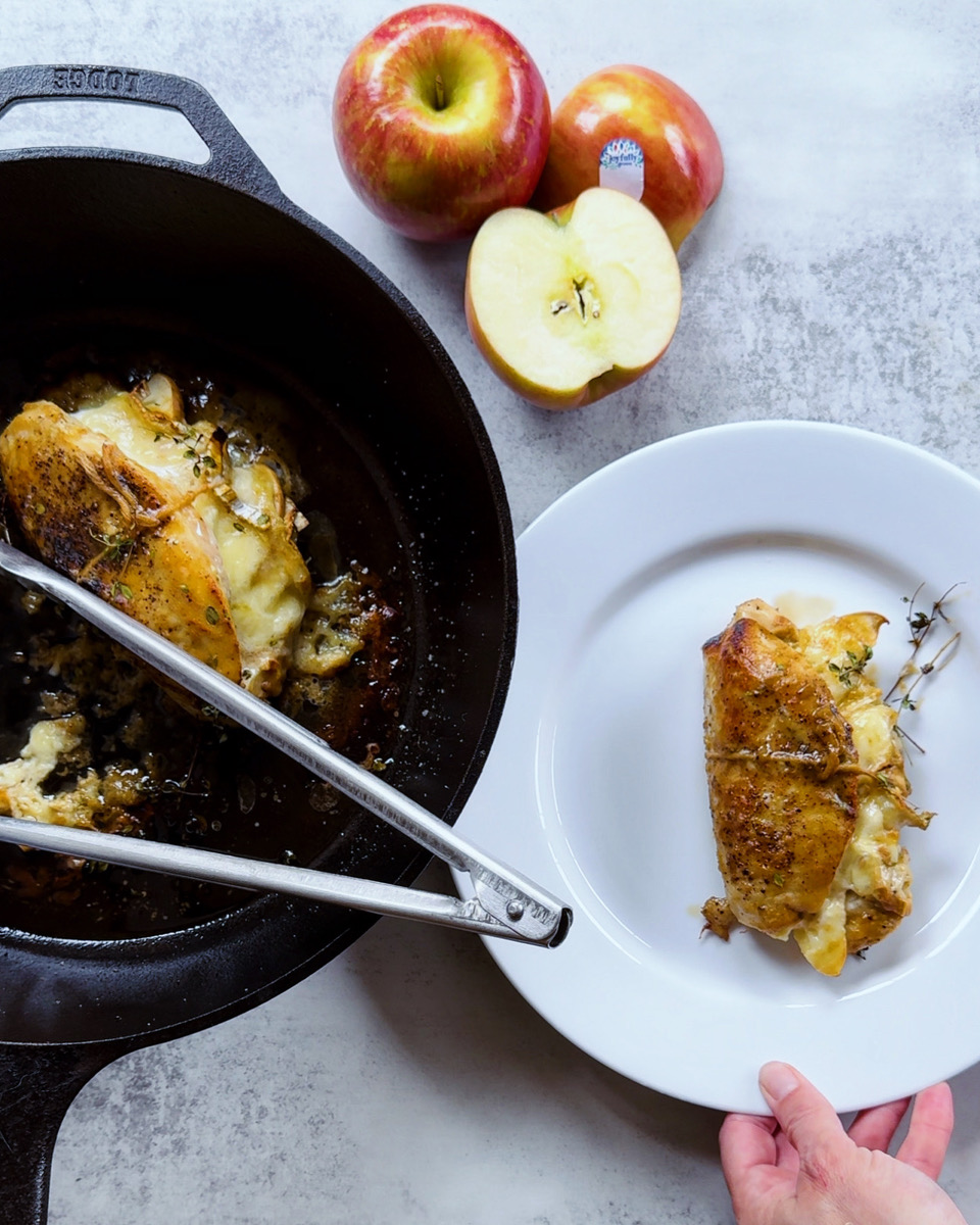 - Stuff each chicken breast with slices of Fuji apple and Brie cheese.