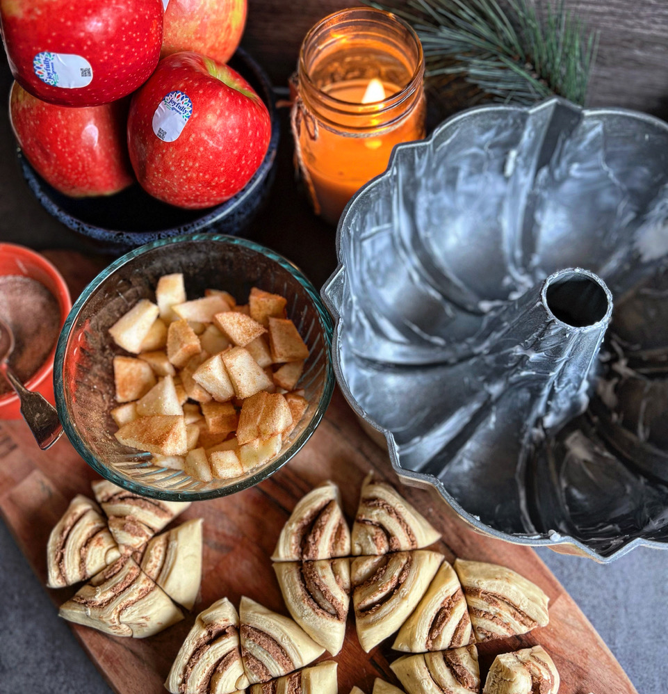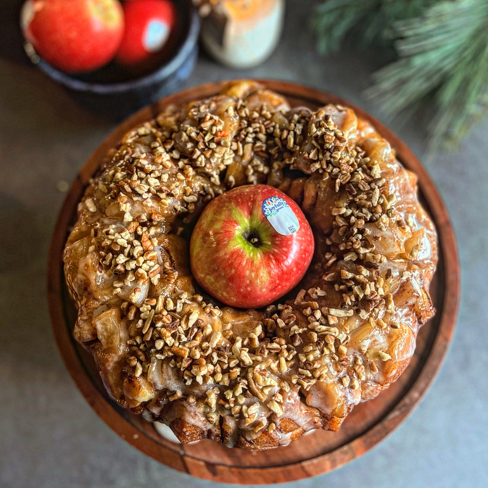 Need a dessert centerpiece? Look no further than this sweet, gooey, crunchy, Pink Lady apple filled delight using store-bought canned cinnamon roll dough, a full stick of butter and pecan pieces. Pink Lady apples are my recommendation for this recipe because they are slightly tart and cook wonderfully while still retaining their shape throughout the baking process. Monkey bread is a great project to do with kids because it is fun, simple, and ready to devour in an hour!