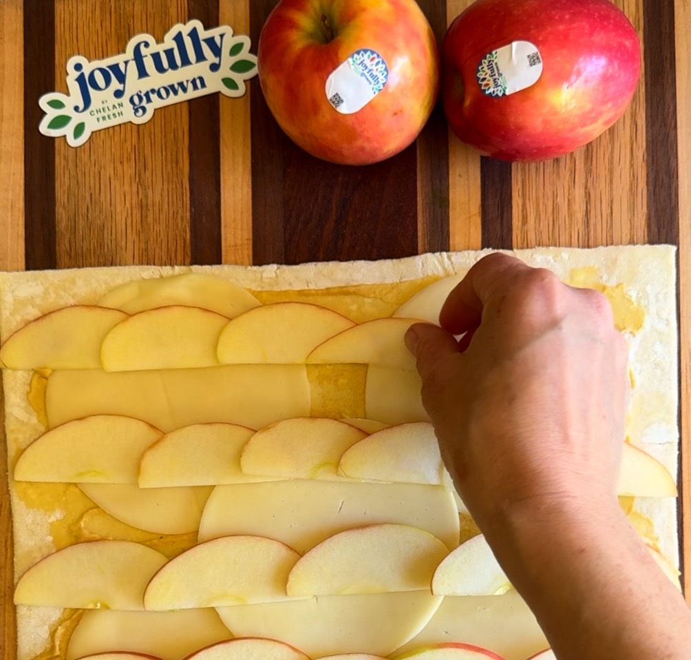 5. Place the Pink Lady apple slices evenly over the cheese.