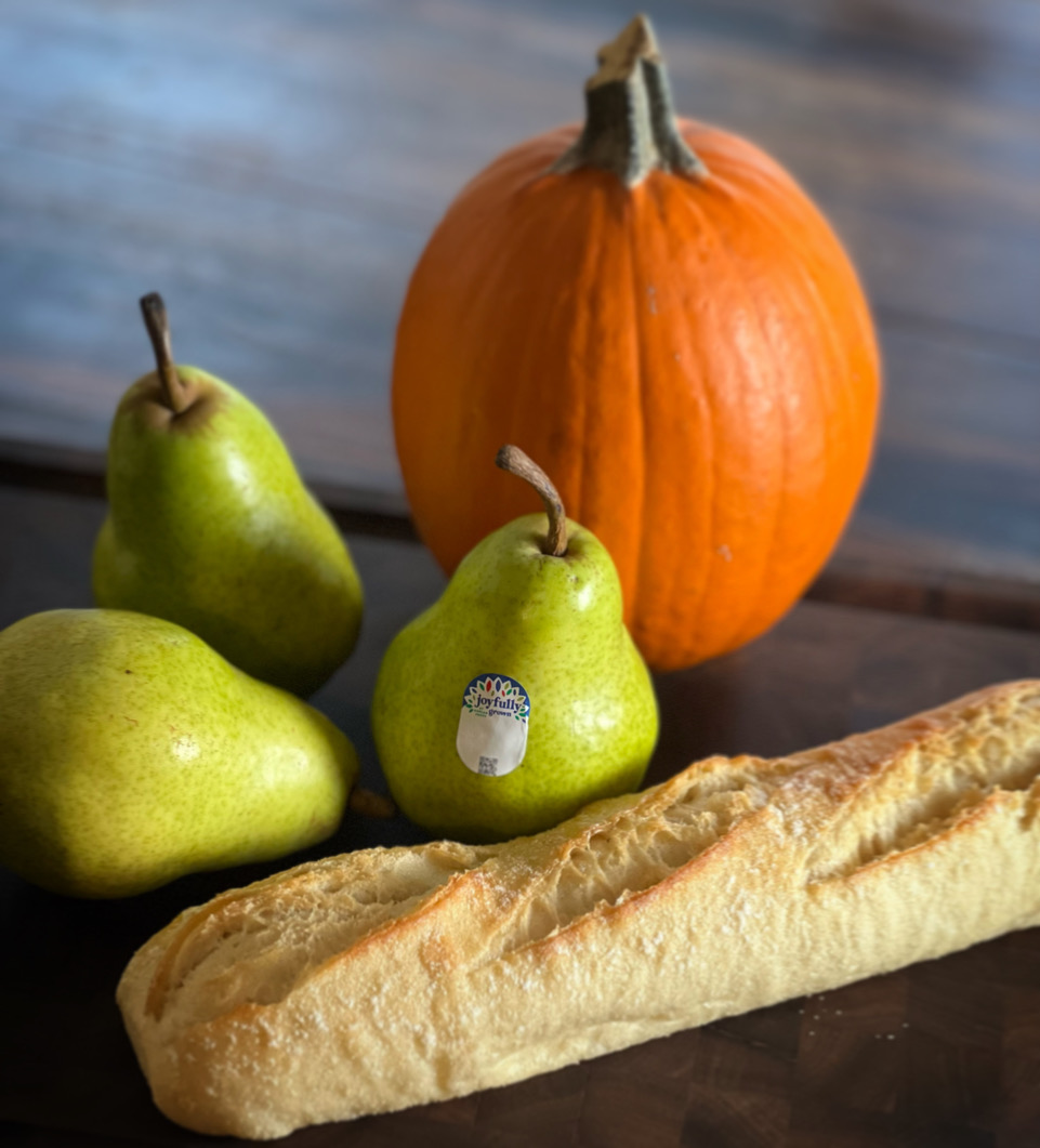 Pumpkin and pear are commonly used in sweet recipes, but with this easy appetizer, we are visiting these flavors in a savory application. Crostini makes a wonderful finger food for any upcoming holiday parties, add pumpkin, pear and brie cheese and you have a glorious seasonal offering to impress your guests with!
