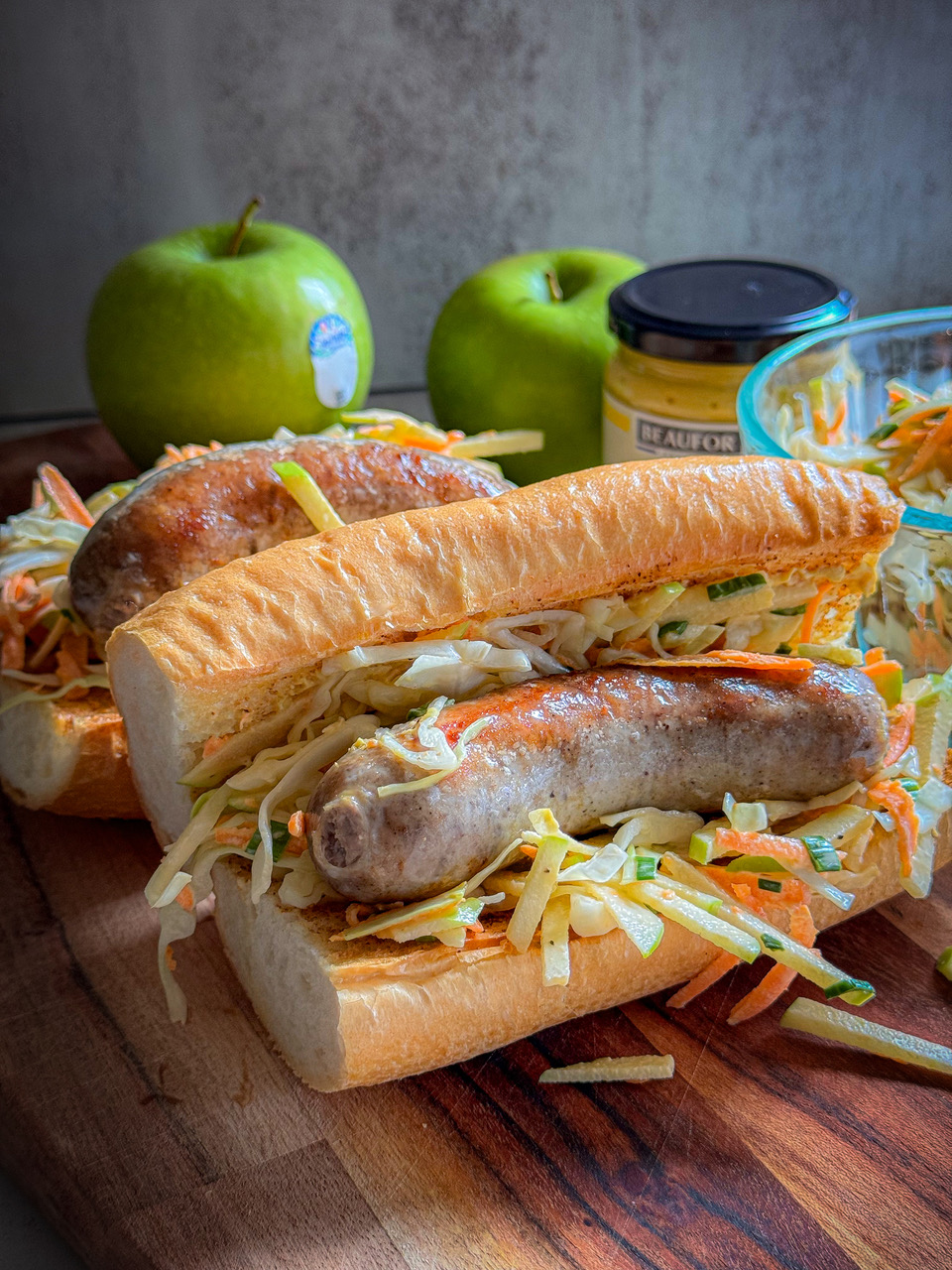 Bratwurst with Fresh Granny Smith Slaw