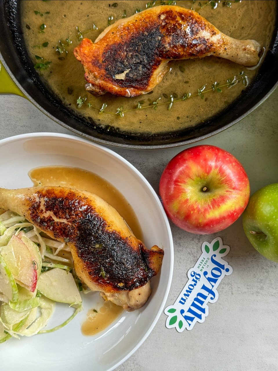 Cider-Glazed Chicken Leg with Apple-Turnip Slaw