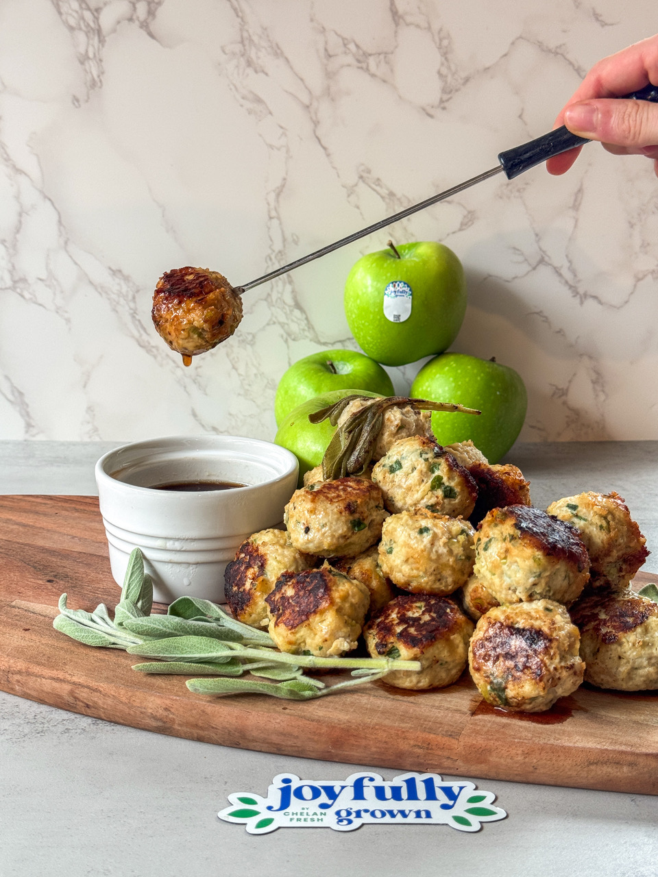Turkey-Apple Meatballs with Maple-Balsamic Dipping Sauce