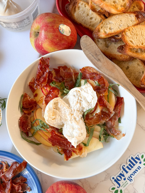 Apple & Burrata Crostini with Honey and Crispy Prosciutto