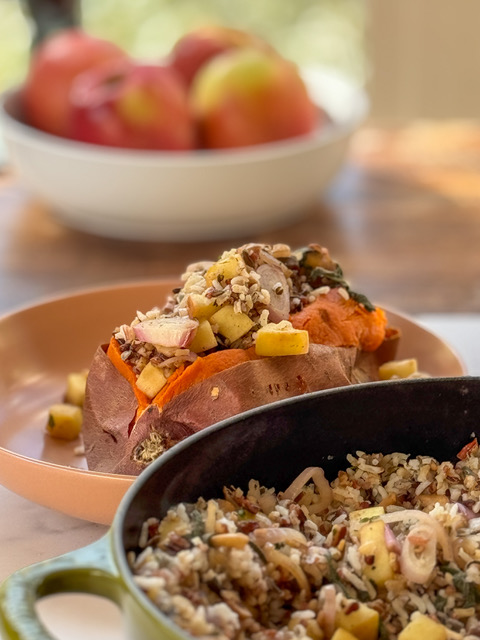 Savory Wild Rice, Mushroom & Apple Stuffed Sweet Potatoes