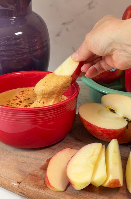 High-Protein Queso with Honeycrisp Apples and Blue Corn Chips