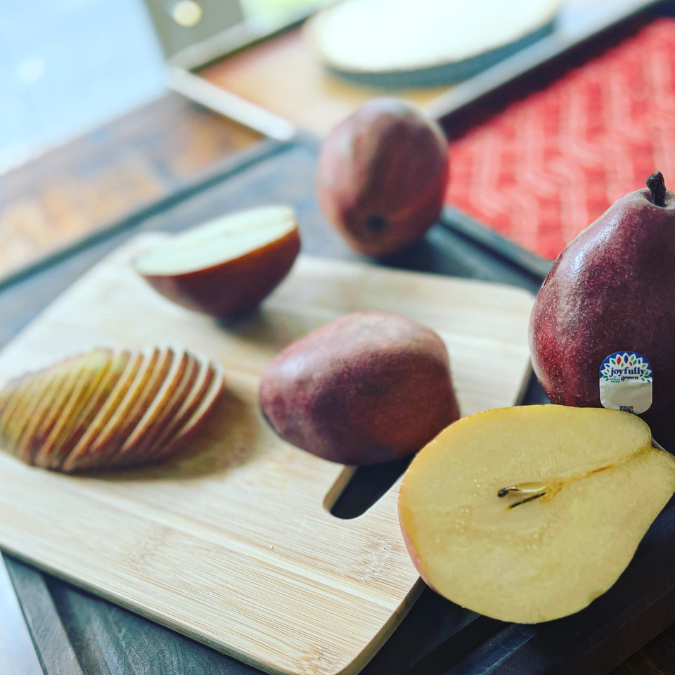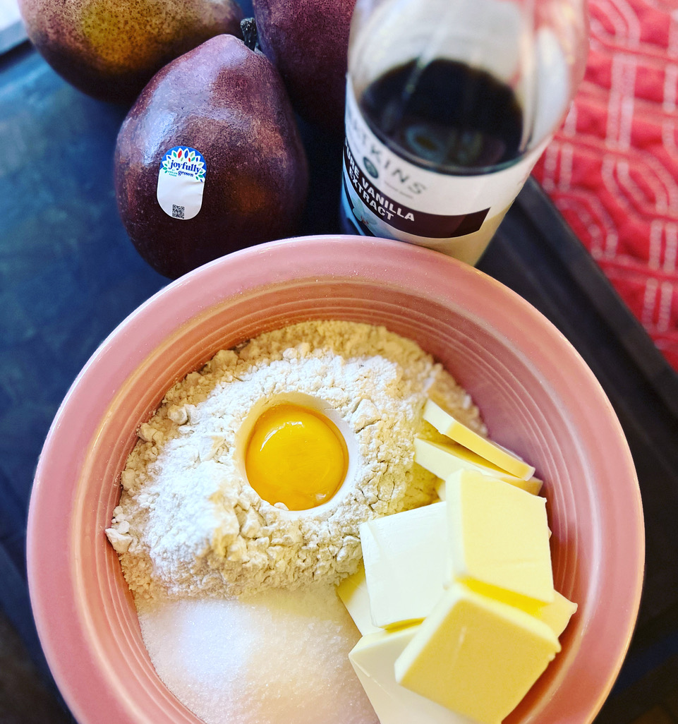 Red Pear Frangipane tarte does not have to be overly complicated. By eliminating a few unnecessary technical steps and replacing them with an easy-to-do method, you can be cooking up this classic French tarte in no time. Red Pears sliced up with the skin on not only make this easy, but beautiful with that vibrant pop of color in what is normally a bland looking dessert presentation. Assembly is a breeze with the forgiving dough texture. Also, the filling is thick allowing for easy suspension of the pear slices. When it is baked and cooled, dust with powdered sugar, slice and serve! Simple, delicious and lovely.