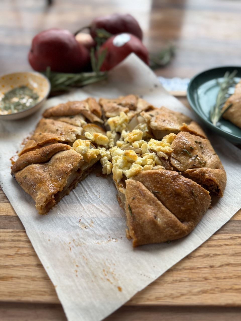 12. When the galette is golden, remove from the oven and brush with the rosemary-infused