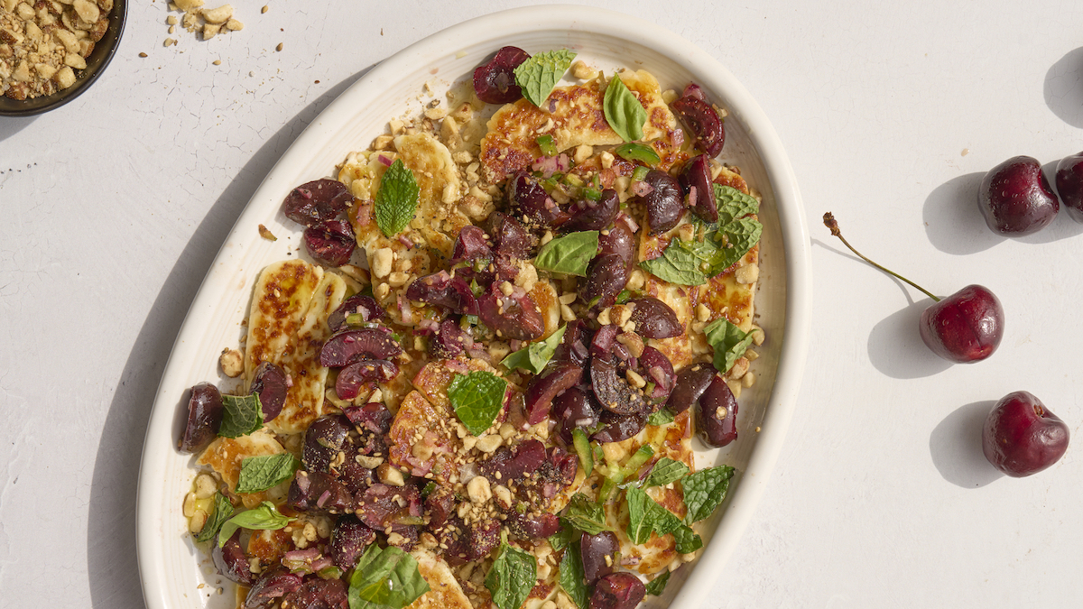Golden, crispy halloumi meets roasted sweet cherry salsa, all finished with a nutty-spiced hazelnut dukkah and a tangle of fresh herbs. Sweet, salty, crunchy, and fresh—this is summer on a plate.