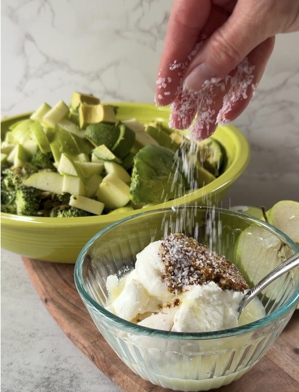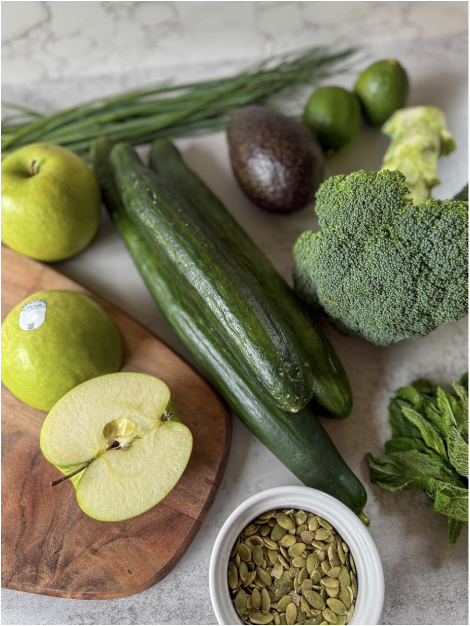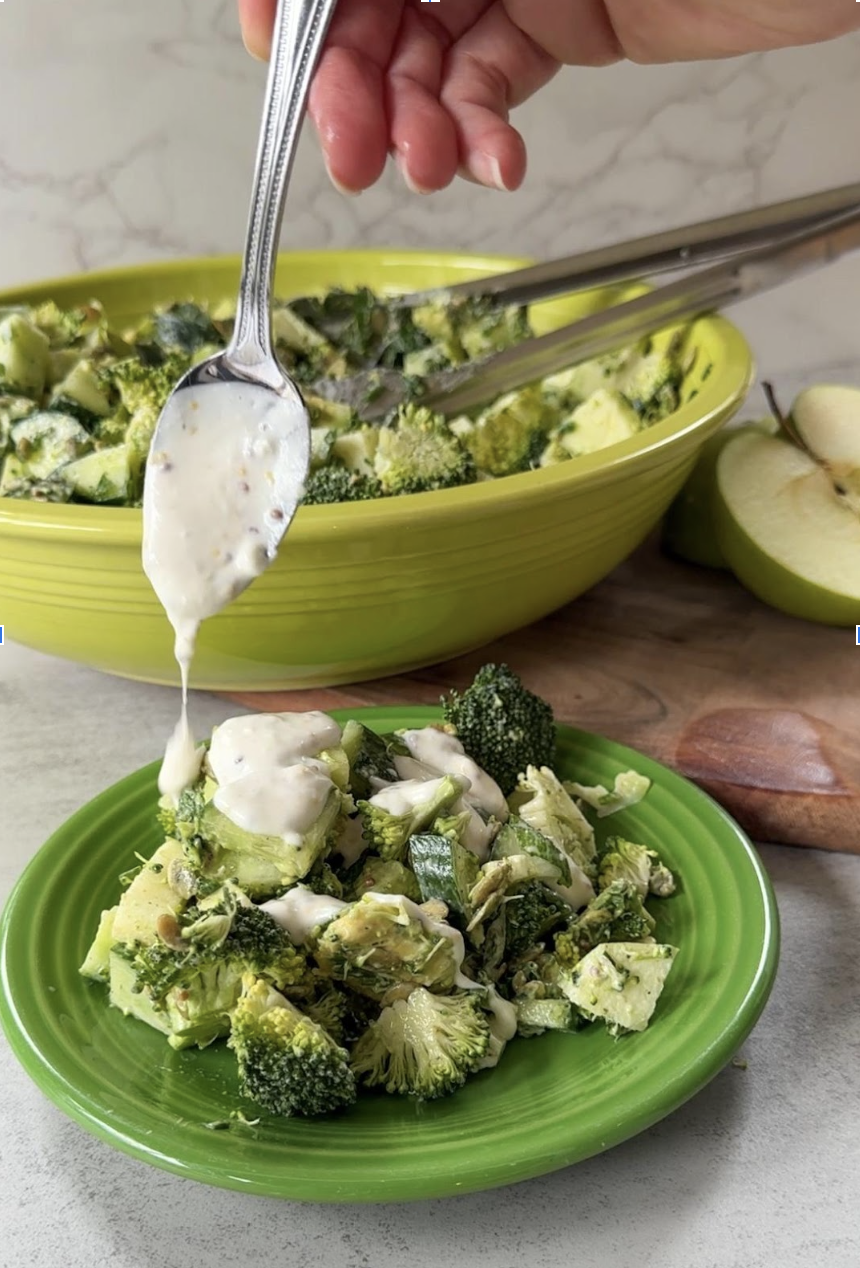This crisp and creamy Super Greens Salad is here to challenge your tastebuds, in the best way. Bursting with crunch from fresh English cucumbers and broccoli, balanced with the tart-sweet bite of Granny Smith apples, and finished with a creamy lime-zested dressing, this salad is as refreshing as it is satisfying. It’s the kind of green-filled dish that makes you forget you’re eating your veggies. Bonus: the handfuls of mint and chives bring brightness to every bite, while the pumpkin seeds add that perfect savory crunch. If you’re looking for a salad that feels like a meal (and doesn’t skimp on flavor), this is the one.