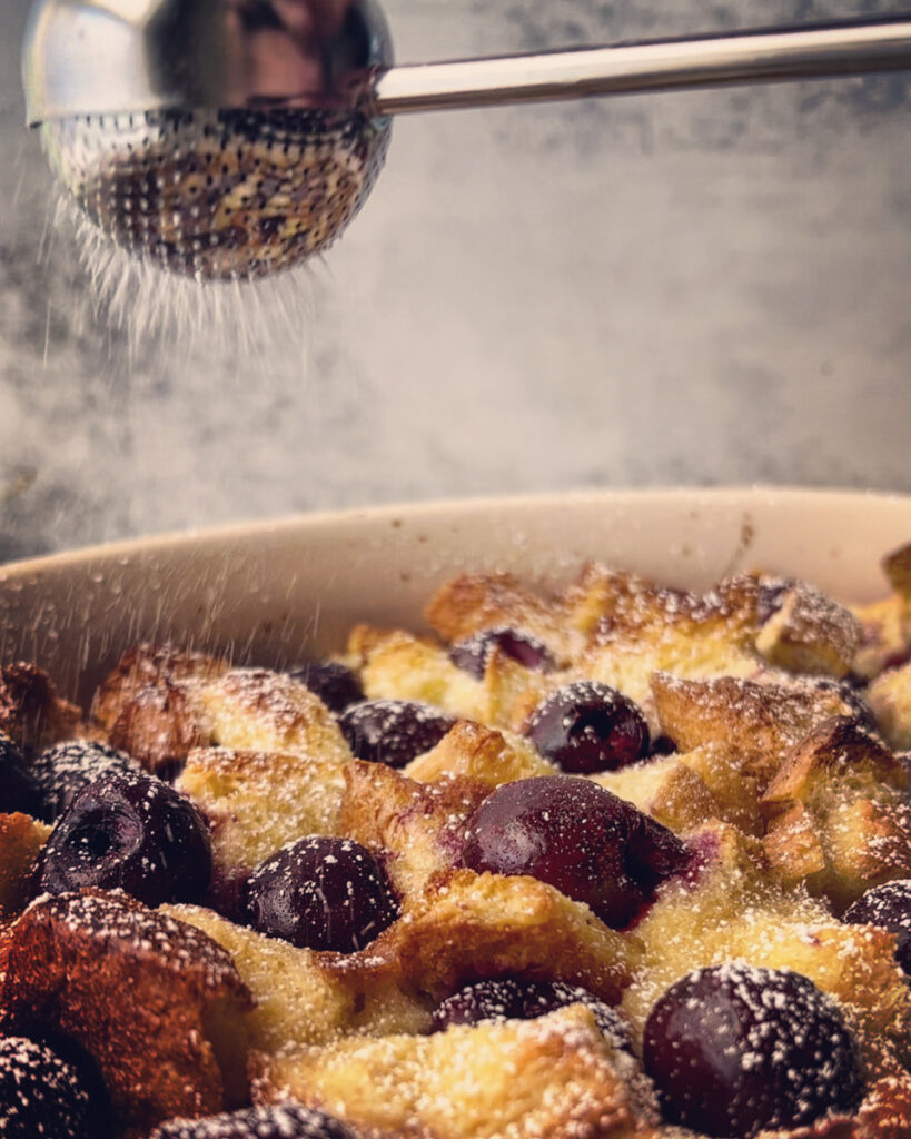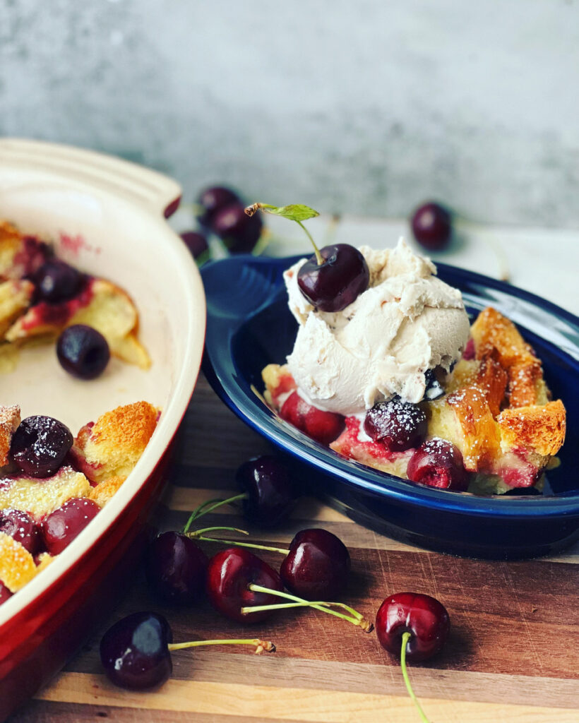 Bread pudding is a tried-and-true classic dessert. In this easy to do recipe, we are using brioche bread and adding fresh sweet red cherries to elevate the old fashion method. Involve the kids and make something new that your family is sure to love. Serve it with an ice cream of choice on a hot day or enjoy as is. This can be whipped up in less than an hour and uses mostly pantry staples.
